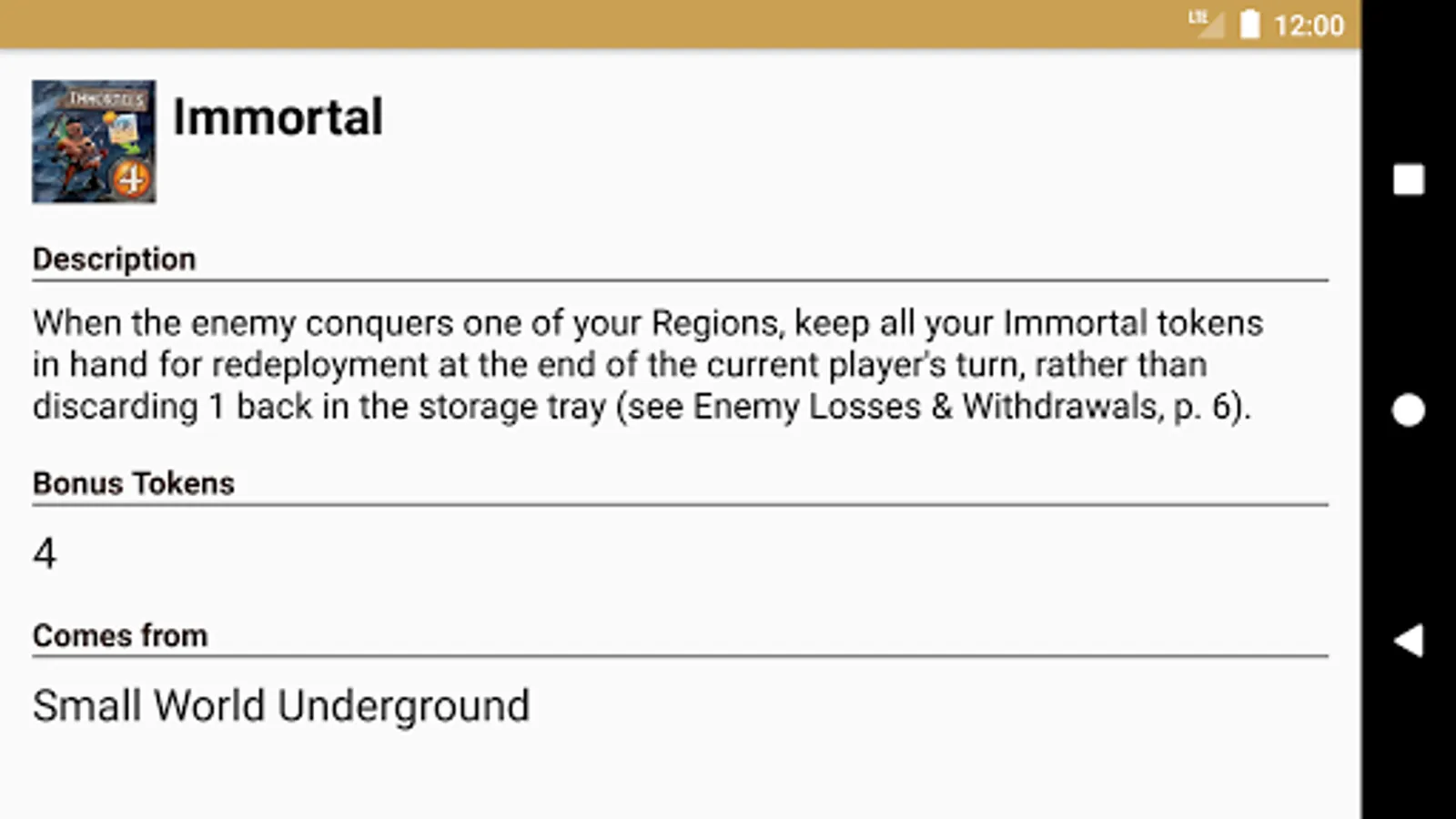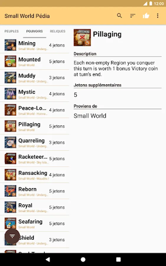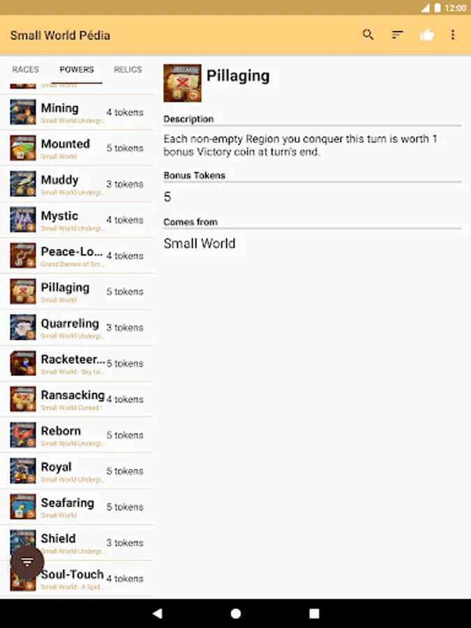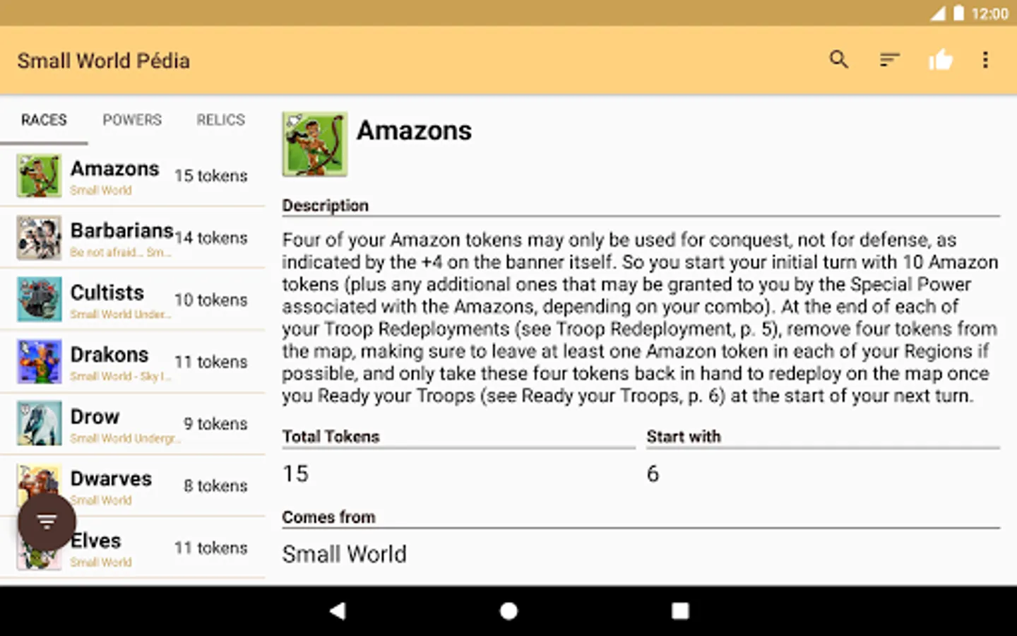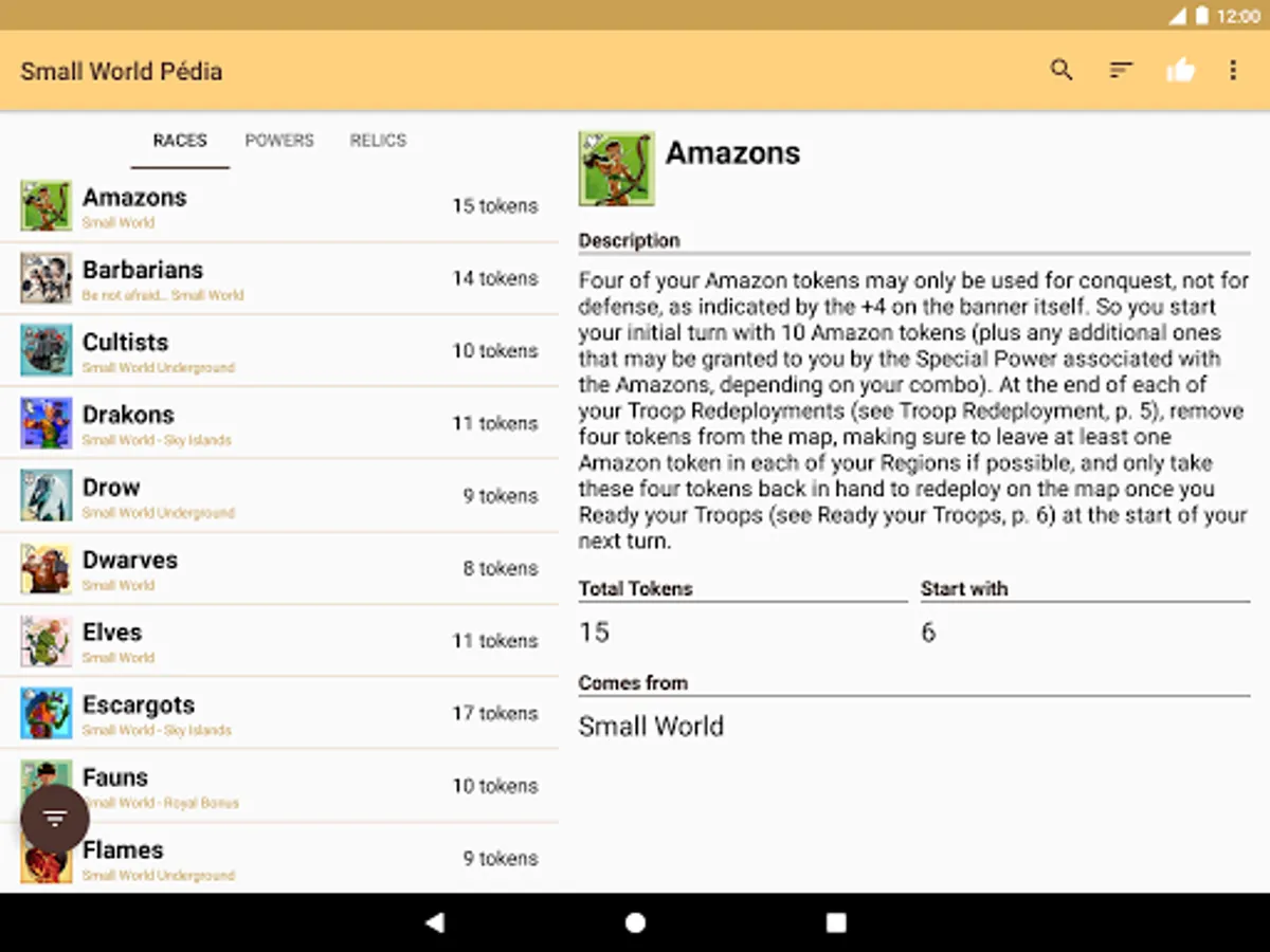 Unofficial Encyclopedia of Small World. This application includes in your smartphone or tablet all the basic information and rules of different Races, Powers and Relics. This application integrates the two games Small World and Small World Underground and all official expansions. Small World is a board game by Philippe Keyaerts published by Days of Wonder.