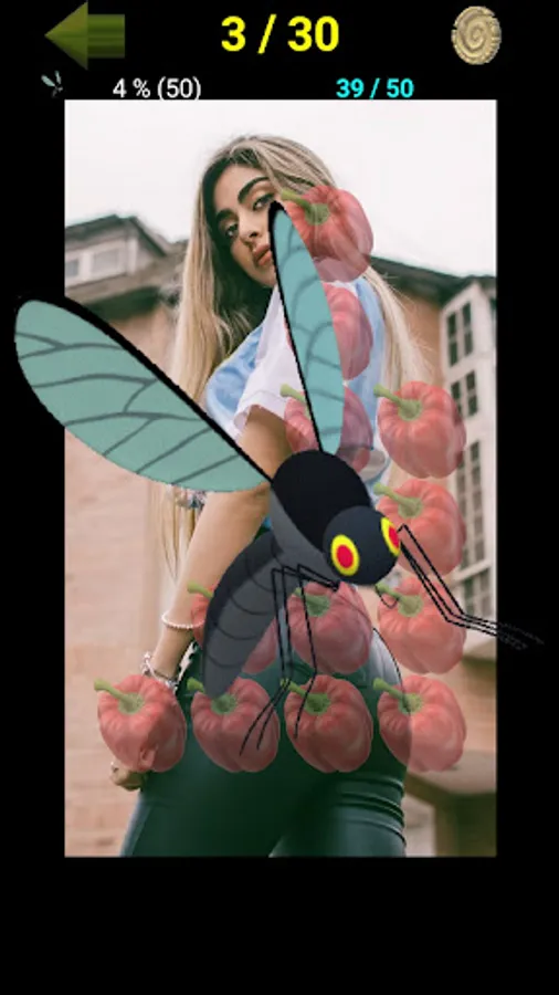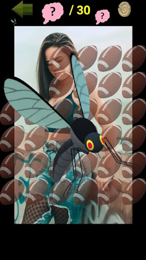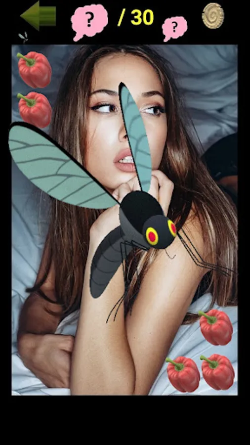 Complete the continually hardening levels to expose sexy beauties. All the girls are at least 18 years old. Progress is autosaved after every level clearance. But, beware of Mosq the mosquito, who is hard to get rid of. When Mosq appears, you need to pop it several times until the counter is full, or load a single powershot to get it dismissed by once. At the start of a level you've got an option to proceed straight to the next level by pressing the coin button or go on to tap the mini icons and hope the best. On the top of the screen you can see the probability of Mosq show up and the amount of needed taps - if that happens. All levels start with the fixed probability of the mosquito appearance, but every time Mosq is successfully dismissed, the probability of show up decreases by 1 per cent. And, there is a bonus screen after level 30 - So don't give up!