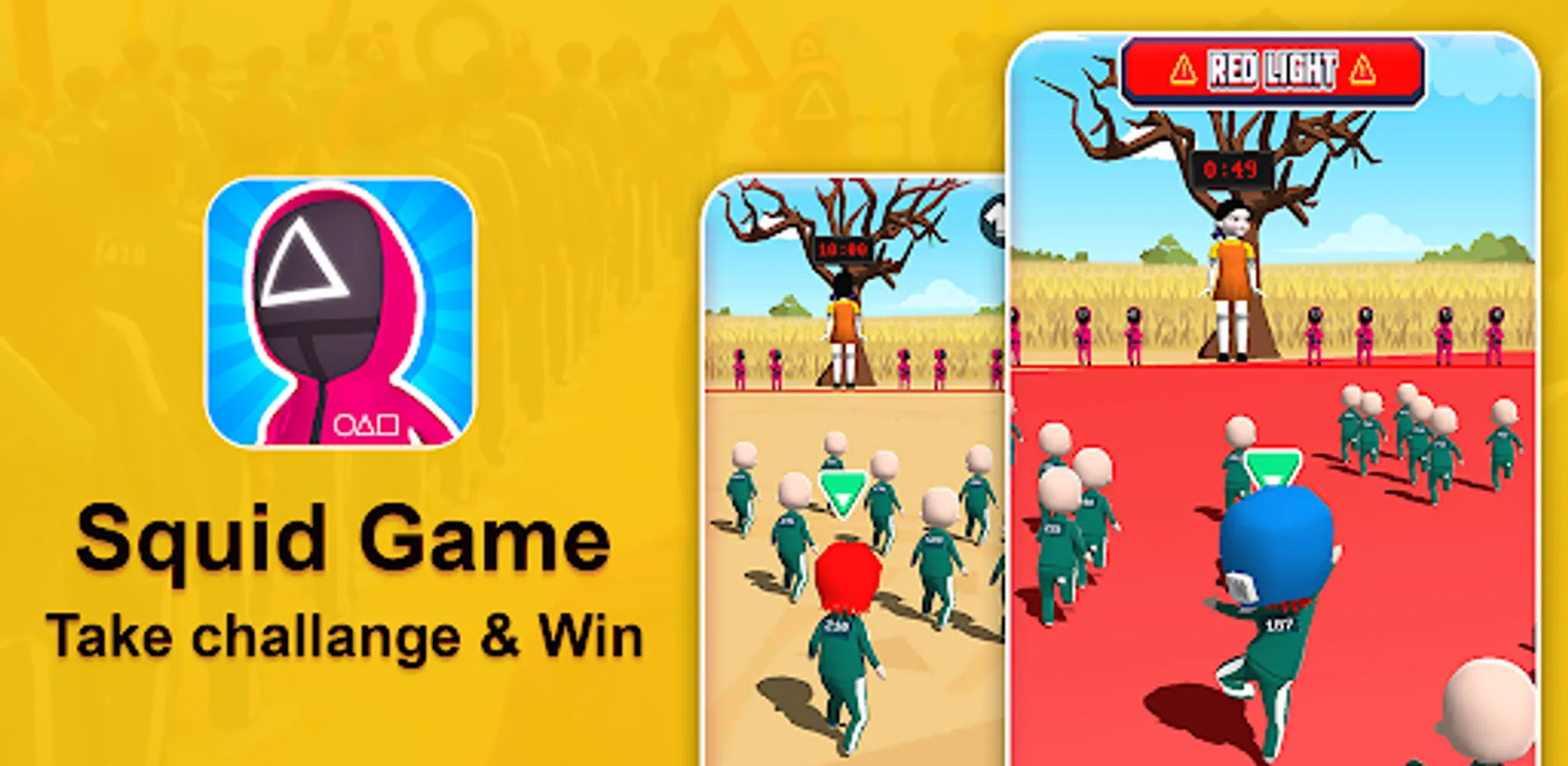 If you break the rule of the race you will be eliminated like join clash and money race 3d. The girl is standing towards the tree and saying green light red light. Eliminate Player will be knocked out in the squid game money run rush 3d. All player perform their tasks in the given time they have. You can ready makeover run with Squid challenge in this amazing year best game in 2022.