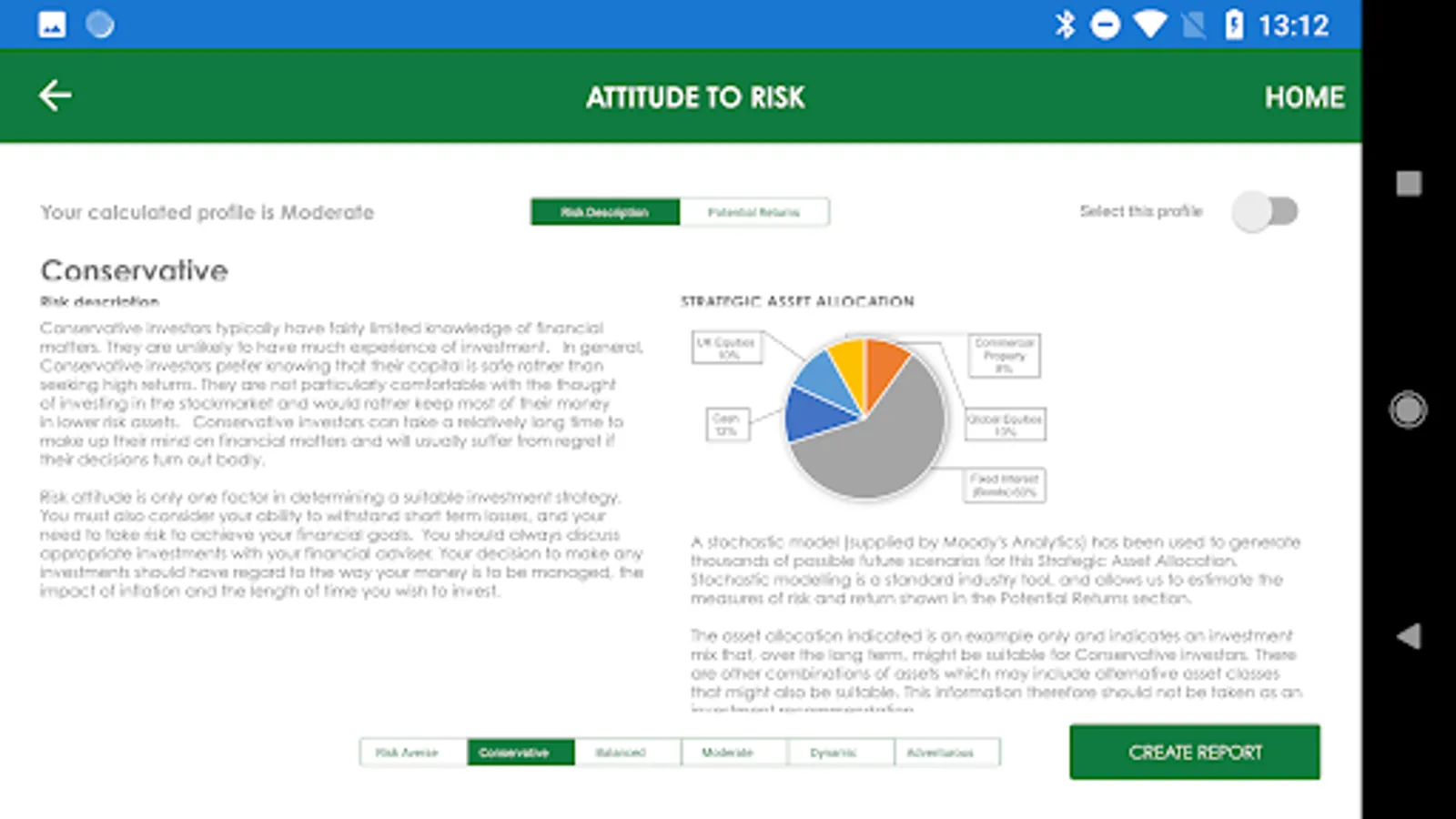 At Quilter our approach to investment advice is based on clearly understanding the client's financial situation, their goals and how much risk they are prepared to take with their money. A key factor when investing is to determine the client's attitude to risk, capacity to take risk and how this fits with their investment objective. This independent risk profiling App is provided for Quilter Financial Advisers to establish the appropriate risk category and determine a suitable strategy for the client's investment.