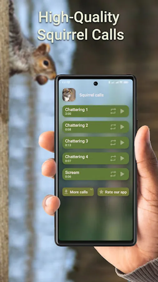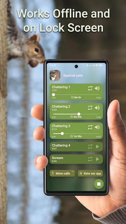 Squirrel hunting calls is a app with a variety of high quality squirrel calls. Get hunting calls and harvest a productive season.