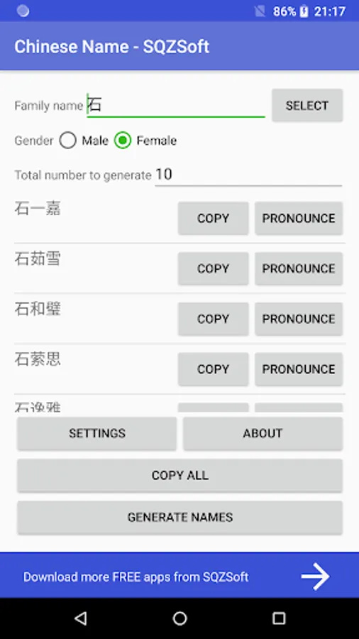 5. Can specify how many Chinese names to generate. There is no limitations to generate names;