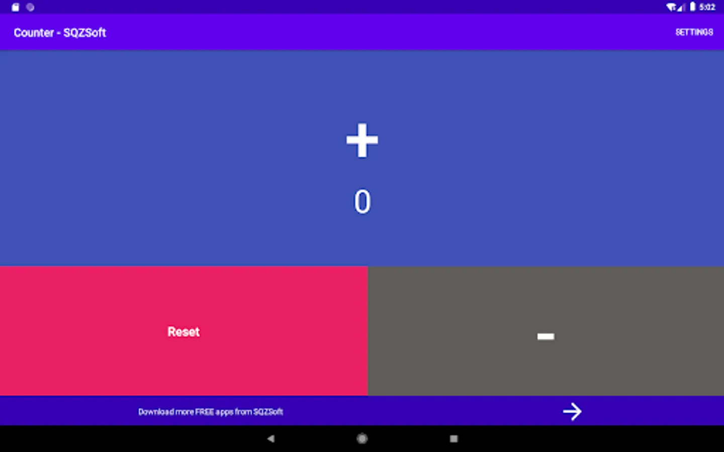 Tap screen to increase / decrease the counter value, reset button to reset counter to 0.