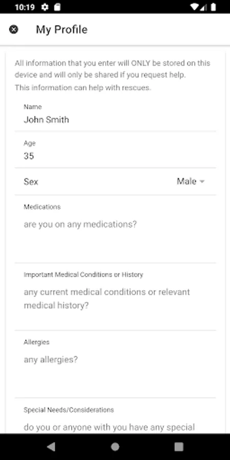 All of this information is kept securely on your smartphone and will ONLY be sent to emergency responders to help them better respond to your situation.