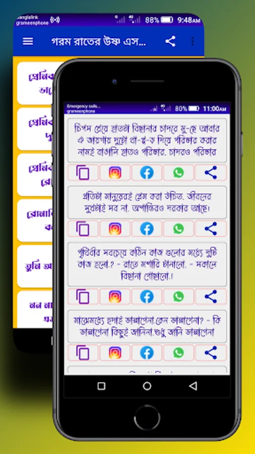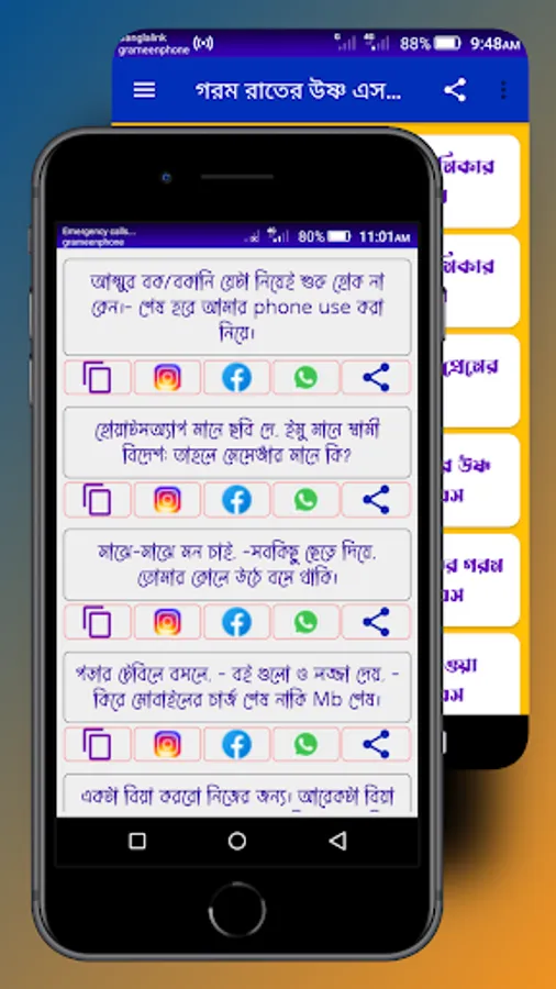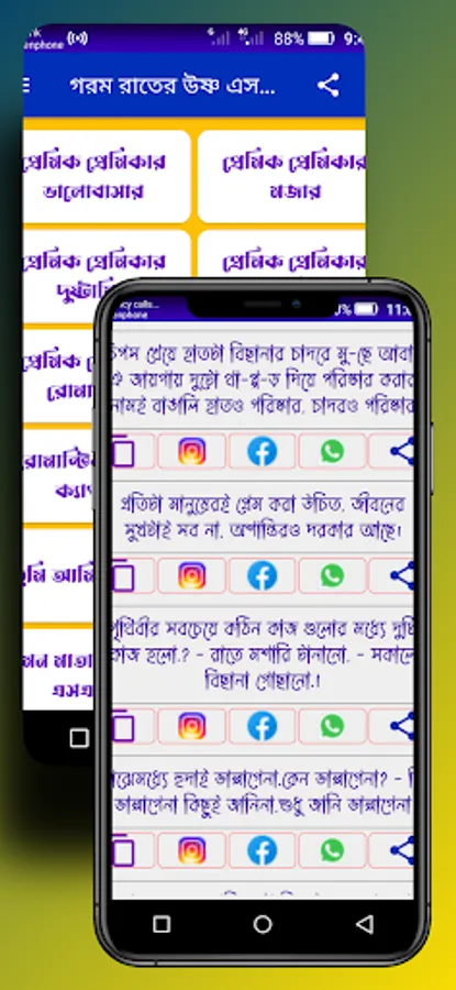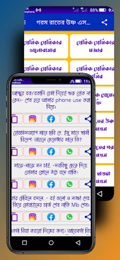 আপনার মনের মানুষ কে খুশি রাখতে প্রয়োজন হয় কবিতা, ছন্দ অথবা ছোট ছোট কথা। সবাই আবার সাজিয়ে লিখতেও পারেন না, তাহলে কি করবেন চিন্তা নেই আমরা আপনাদের জন্য নিয়ে এলাম সম্পূর্ন বাংলা ভাষায় লেখা গরম রাতের উষ্ণ এসএমএস অ্যাপ। আপনি শুধু পড়বেন আর যেটা পছন্দ সেটা কপি, শেয়ার, সেন্ড করে পাঠিয়ে দিবেন আপনার মনের মানুষকে।