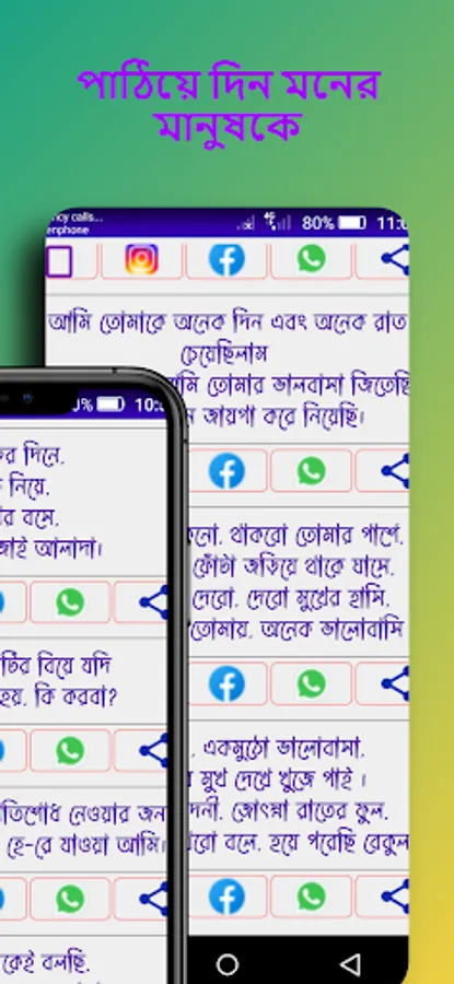 আমাদের প্রত্যেকের জীবনে ভালবাসা আসে কিন্তু সে ভালবাসা নিয়ে আমরা বেশি দূর যেতে পারিনা, কারন আমরা আমাদের মনের কথা গুলো আমাদের মনের মানুষকে গুছিয়ে বলতে পারিনা। এর জন্য আমাদের অনেকের মনের কষ্ট গুলো মনের মধ্যেই রয়ে যায়। আবার রাতের বেলা গরমে যখন ঘুম আসেনা চোখ ছটফট করতে থাকেন আর ভাবতে থাকেন ঠিক কি করা যায় বুঝে উঠতে পারেন না তখন দরকার বাংলা বিভিন্ন ধরনের এসএমএস। তাই মনের মানুষকে তখন ভালবাসি বলতে হয় অথবা মনের কথা গুলো আদান-প্রদান করা যায় তার জন্যই এ অ্যাপে ঠাণ্ডা কিছু চিন্তা দ্বারা মিষ্টি প্রেমের এসএমএস লেখা। যা আপানাকে নিয়ে যাবে এক অন্য লেভেলে। এবং খুব সহজে আপানার মনের মানুষের মন জয় করে নিতে পারবেন।