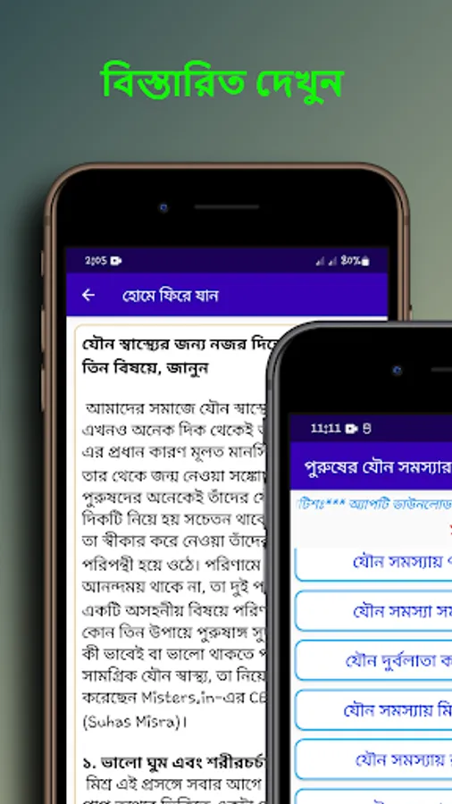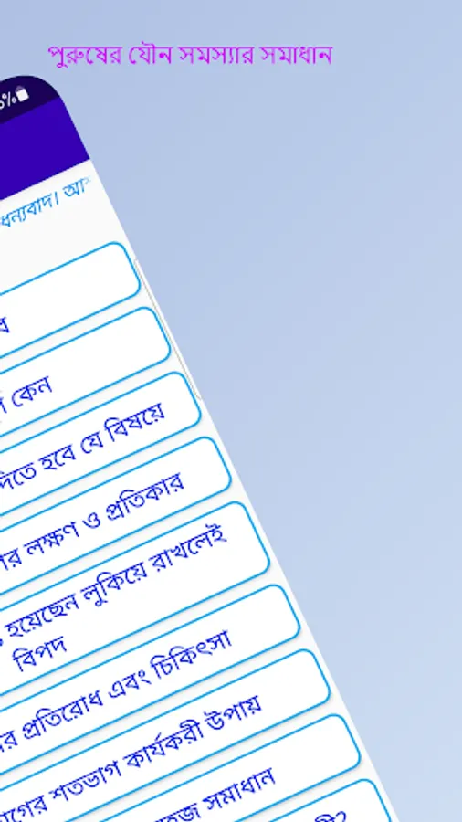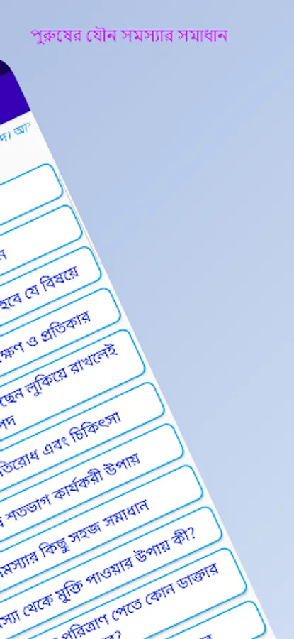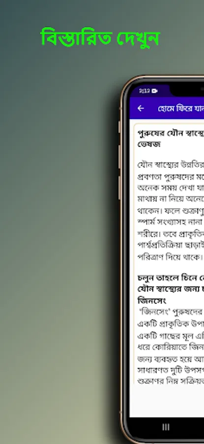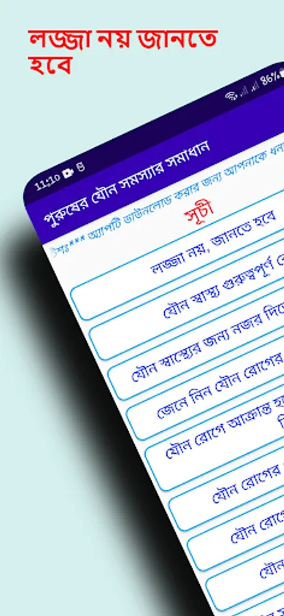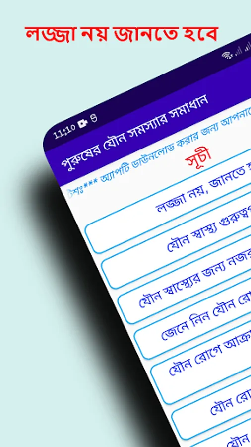 তাই এমন একটা গুরুত্বপূর্ণ সমস্যার সমাধানের জন্য আমরা নিয়ে এলাম একটা অ্যাপ। যার মধ্যে পুরুষের গোপন সমস্যা সম্পর্কে বিস্তর আলোচনা করা হয়েছে। আশা করি অ্যাপের মাধ্যমে অনেক কিছু জানতে বা শিখতে পারবেন।