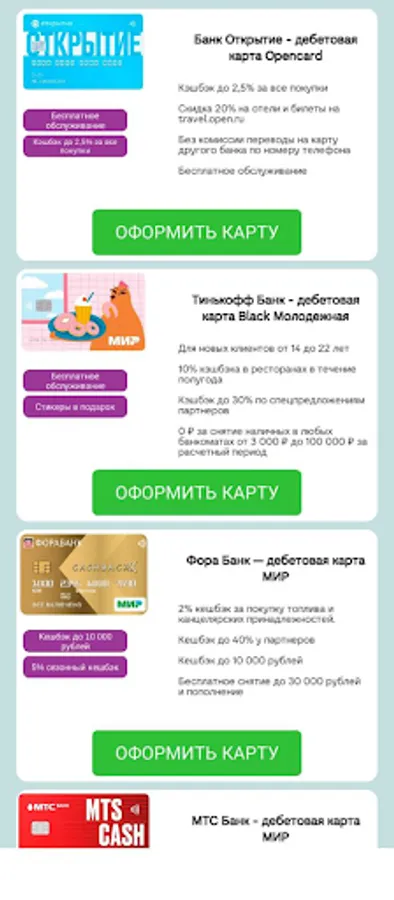 Top best debit cards with online processing. Compare all the advantages of debit cards with free service, cashback, balance interest and commission-free transfers. Debit cards are delivered by courier free of charge. Get the best conditions and leave a request without having to visit a bank branch.