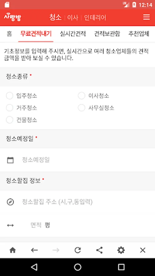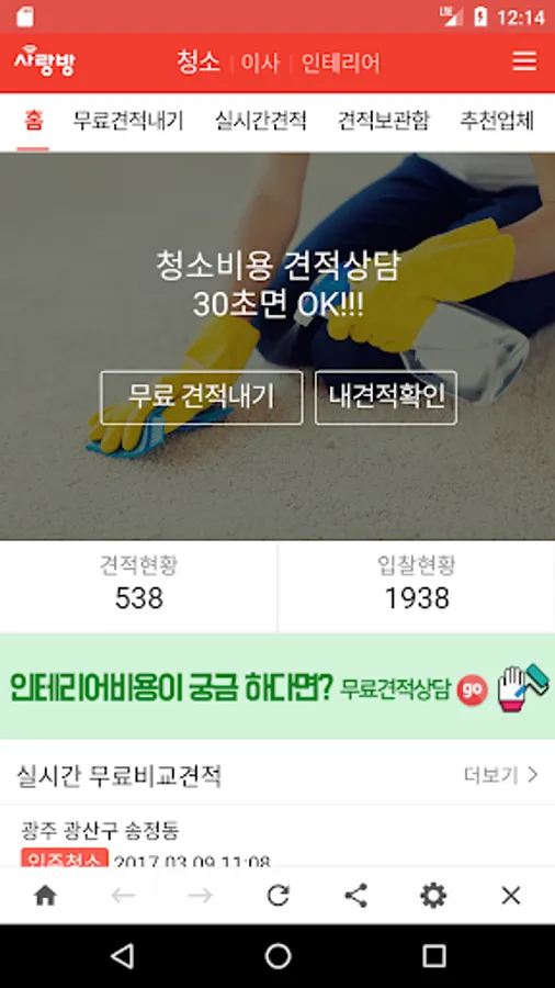 청소비용 견적서비스 사랑방으로 시작하세요!