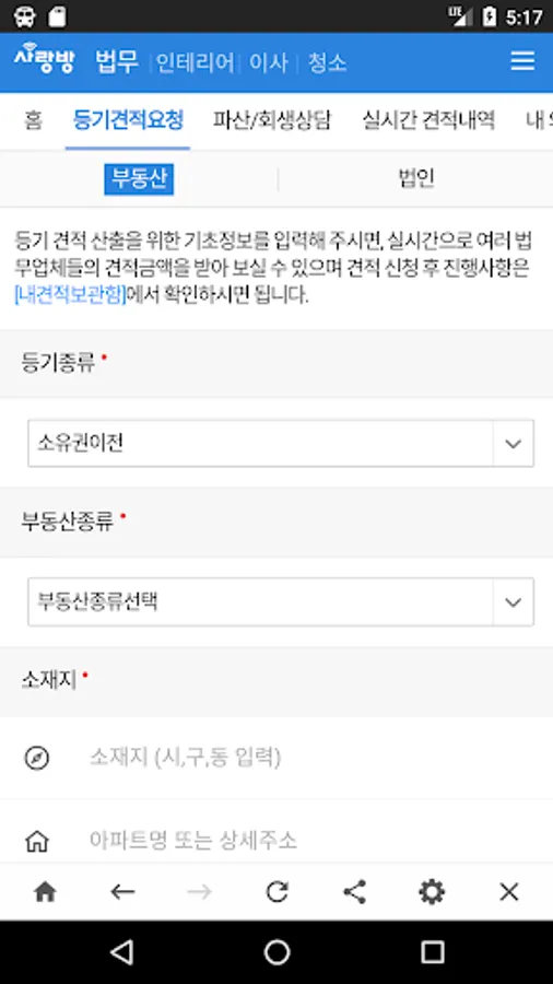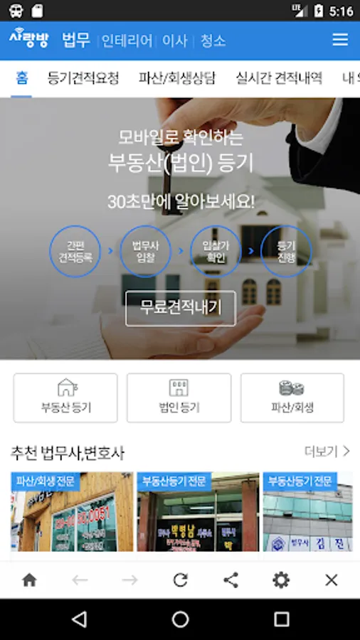 광주/전남 최초! 등기비용 무료 견적비교 앱, 사랑방법무