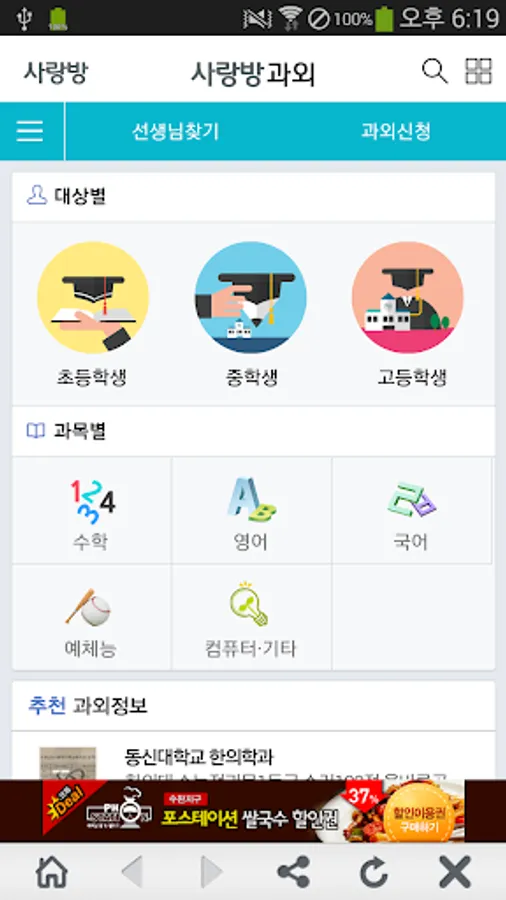 우리아이를 위한 맞춤 선생님 정보 '사랑방과외' 어플 출시