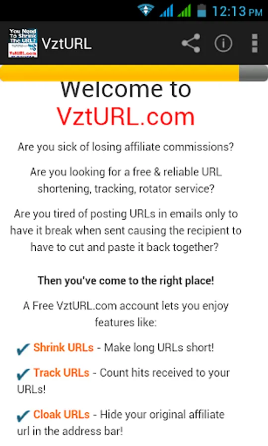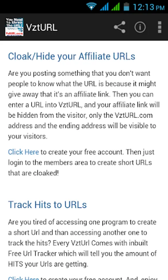 There is an easiest way to shrink URL in just one click. Enter your URL into vzturl.com and click on shrink it. And get your short URL that will not break in email postings and never expires. So, Download this App immediately and enjoy our services absolutely free.