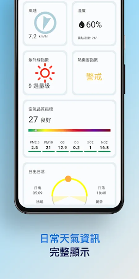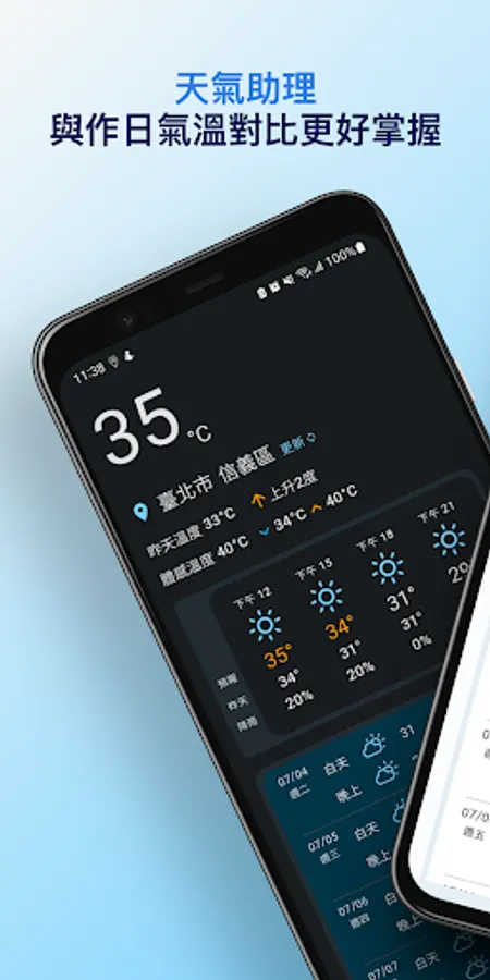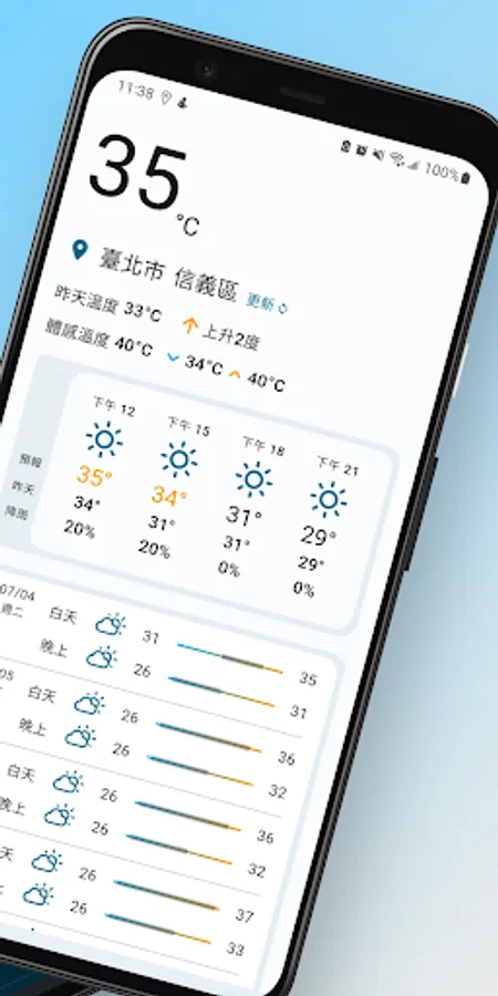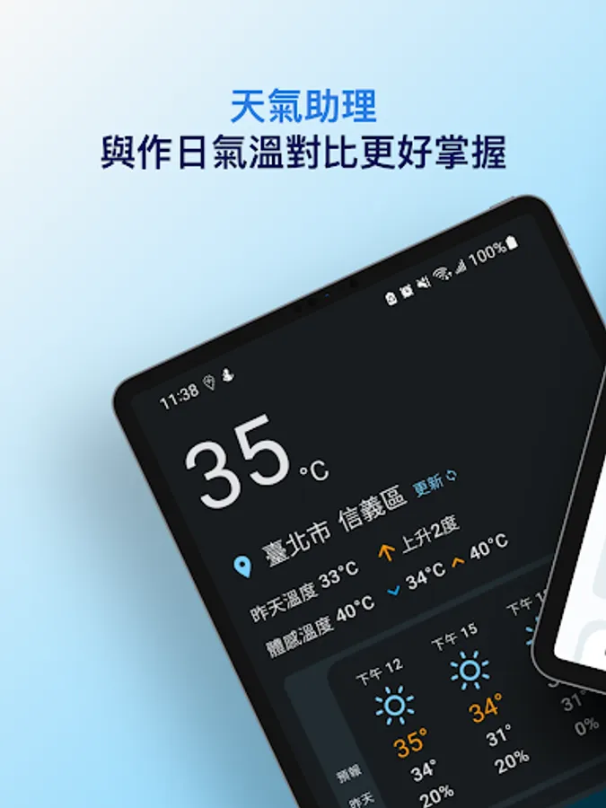 "Weather Assistant - Compare with yesterday's temperature for a better grasp" provides a comparison between yesterday's temperature and today's weather forecast, as well as real-time temperature/feeling temperature and weather status. At the same time, the weather forecast every three hours in the future and every morning and evening is also clearly displayed. It is more convenient for you to find the weather information of the area by clicking on the area through the map. The simple and clear interface includes light/dark mode, providing you with the complete weather information you need every day, and it is also convenient for you to plan tomorrow's dressing style~