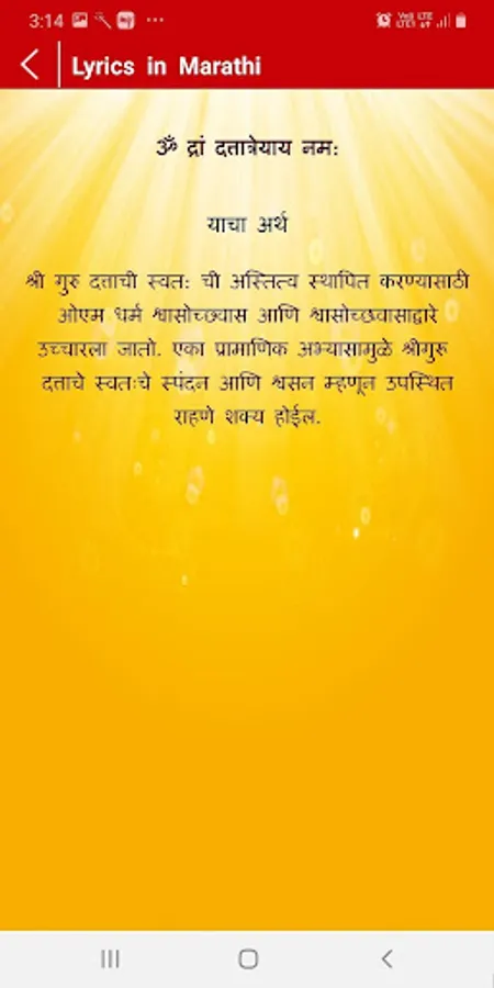 The app contain the mantra Lyrics and its meaning in Marathi and English languages with high quality Audio that can be used for Meditation.
