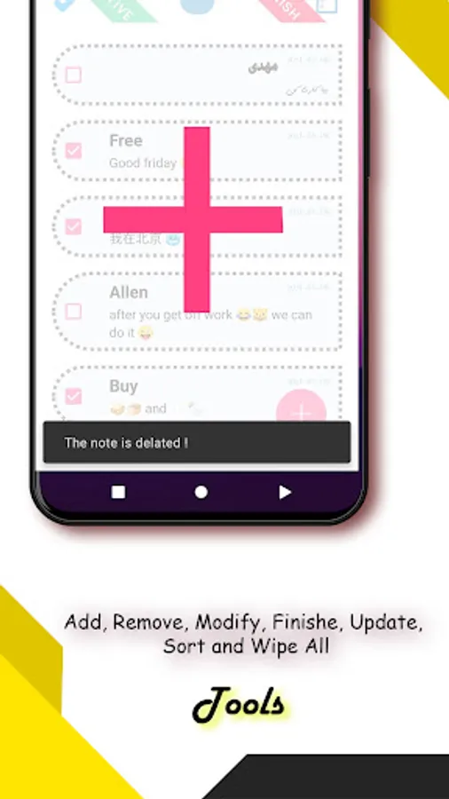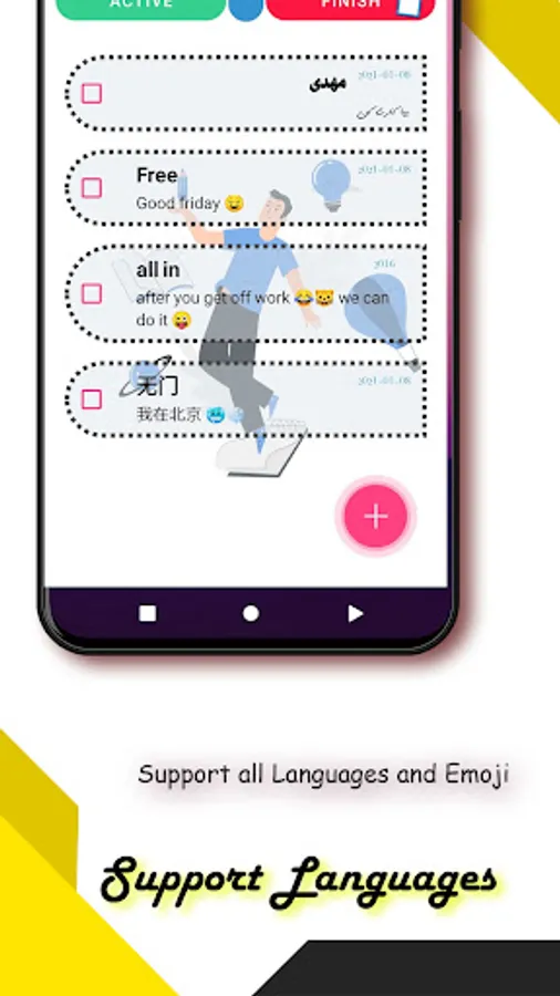 This app can support all languages in notes and it's smart that can support English and Persian phone languages.