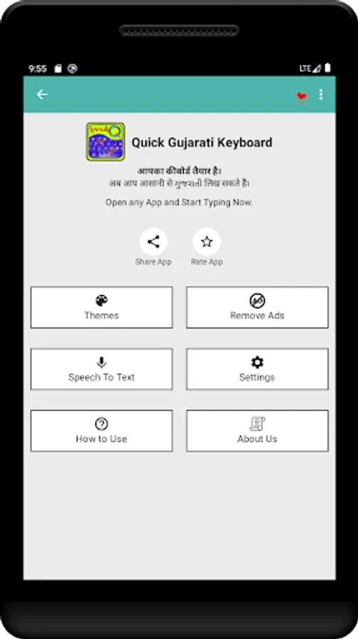 If your are able to read "મારા ભારત મહાન છે" (Gujarati text) on your mobile phone, you can install this application.Quick Keyboard provides easy way to type in Indian languages.Gujarati Keyboard helps to enjoy each and every taps with music just on your fingers.