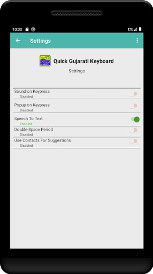 This keyboard works as default keyboard in android phones/tablets for typing/texting in Gujarati. Just type in English and press spacebar your English word will be converted into Gujarati script automatically.