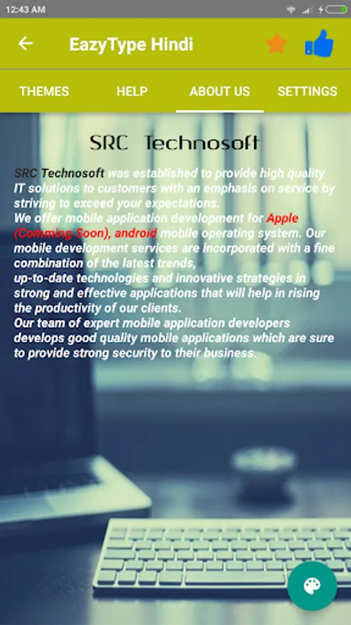 App will help to type your all words in Hindi. Our app is having more than 300 Emoji and it is fully free to use in any text message format.And yes it is supporting more than 10 languages. Quick "Hindi keyboard" app will allows you to type message, Story, E-mails,blogs etc. in Hindi language. You will also find superb eye catching themes on Quick Hindi Keyboard. You can also customize these themes in keyboard and make it more attractive as per your wish by making required modification in custom settings.