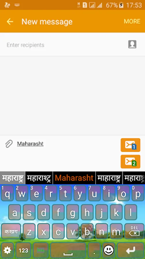 This is a Soft Keyboard to type Marathi on your Phone. You can type easily on any app like Gmail, Facebook, Whatsapp. you can write blogs in Marathi in web browser. This keyboard works as default keyboard in android phones/tablets. No need to learn specific Marathi keyboard. Just type in English and press space you English word will be converted into Marathi script automatically. This keyboard provides word suggestions to type in a fast way. This Keyboard provides English typing option to type in English. if you want to type in English just press toggle button to switch English to Marathi or Marathi to English.