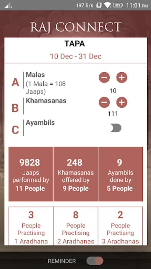- View the number of users worldwide who are participating in the Aradhana, thus building a powerful network of connection and inspiration.