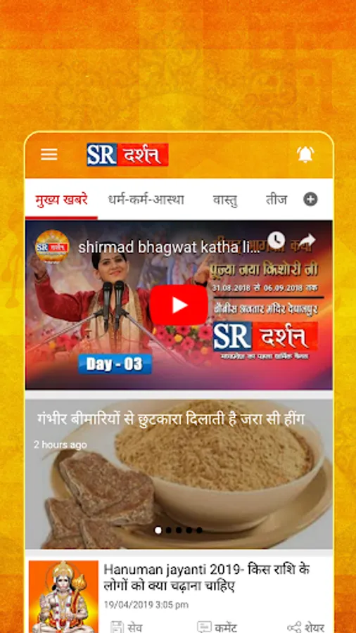 SR Darshan TV is one of the leading hindi devotional channel in India and first devotional channel of Madhya Pradesh. Stay tuned for more Bhagwat Katha, Ram Katha Live, Bhajan Sandhya Live & D - live, Bhakti songs, Aarthi Songs, Devotional albums, Devotional songs and Bhajans