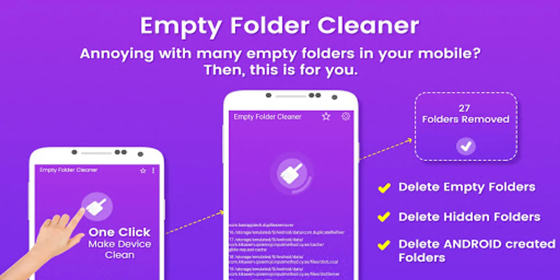 This app can clean empty folders and other junk folders that are created by other apps. Now you can deep clean empty folder by this app. it’s a simple and lite app to clean empty junk folder.