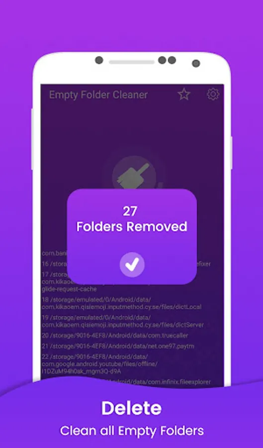 This is a simple and clean app for deleting unnecessary and auto Android System generated Folders. This app will help you delete all empty folders and subfolders on your device. Also you can select folder to delete all empty folders and subfolders only inside of it.