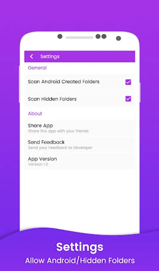 - This App scans Android, Hidden and SD Card.
