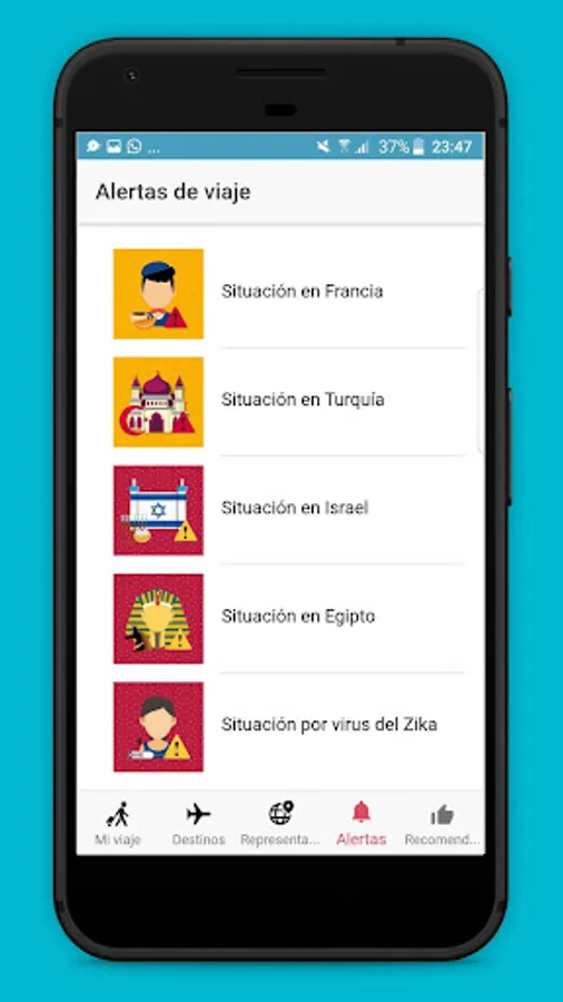 • Enter your itinerary in "My trip" (SIRME) section and receive travel alerts in real time.