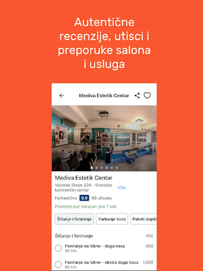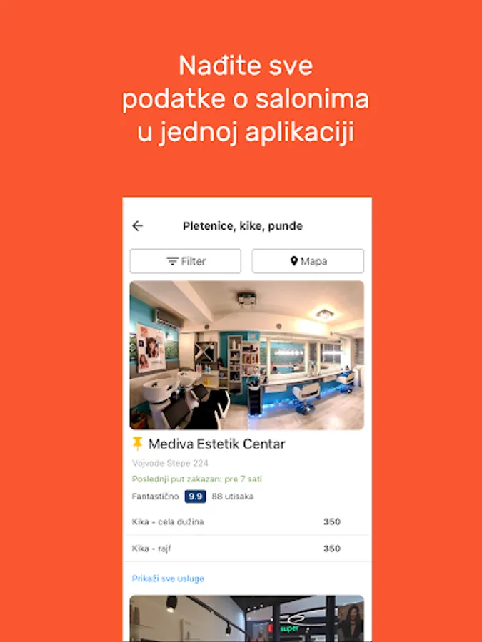At SrediMe you will find excellent beauty salons, hairdressing and beauty salons, SPA centers, massages and all other beauty & wellness services. Find your favorite new or old hairdresser for haircuts, strands or hair coloring, beauticians or top nail treatment at pedicures and manicures. The best beauty salons in Belgrade, Novi Sad and other cities in Serbia are in front of you. Looking for a hair salon or other beauty salon that works on Sundays, holidays, evenings, salons that use your favorite brand of cosmetics ... All this is easy to find on SrediMe.