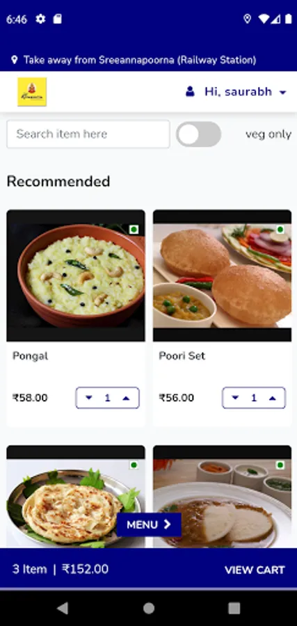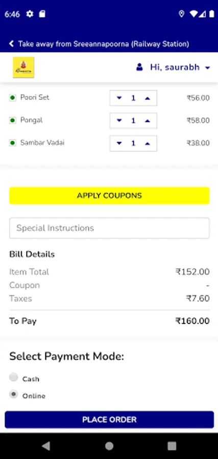 Save your food items in cart