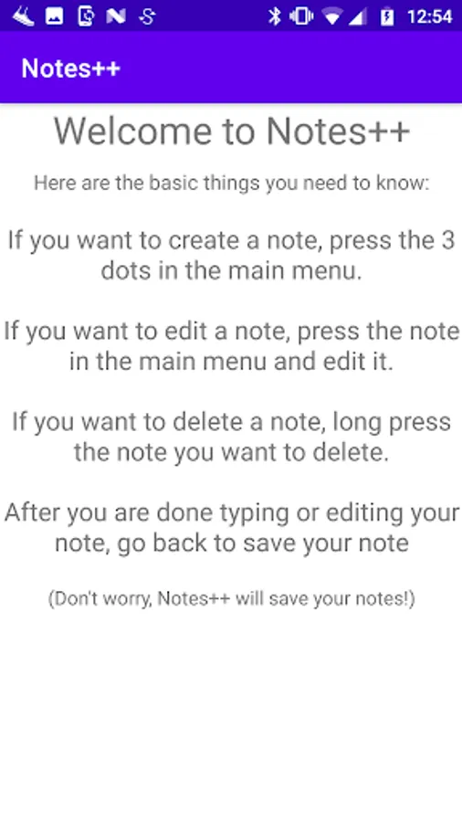 Did you ever want to take note of something but didn't have a notepad? Well, this app could be your solution. This app can hold thousands of notes written by you. You can add, delete, and edit your notes!