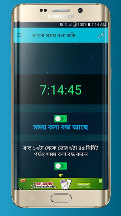 অ্যাপ। Somoy bola Ghori নির্দিস্ট সময় পর পর আপনাকে জানিয়ে দিবে bangla talking time clock অ্যাপটি আপনার সময়ের কাজ সময়ে করতে সাহায্য করবে। যারা কর্ম ব্যস্ততায় time মনে রাখতে পারেন না তারা এই অ্যাপের talkingtime ফিচার দিয়ে সময় জানতে পারবেন মোবাইল চেক করা ছাড়াই। সময় বলা ঘড়ি অ্যাপটি নির্দিস্ট সময় পর পর আপনাকে জানিয়ে দিবে এখন কয়টা বাজে, সাথে অ্যালার্ম আর টাইম ল্যাপ মাপার ব্যবস্থা তো আছেই Somoy bola Ghori অ্যাপটিতে।Talkingtime ফিচারটি খুবই দারুন ও উপকারী যা সুন্দর ও সুমধুর কন্ঠে বাংলায় সময় বলে দেবে। kotha bola কন্ঠটি খুবই চমৎকার যা আপনাকে বিমোহিত করবে। bangla ghori গুলোর মধ্যে এটাই সব চেয়ে সেরা বাংলা কথা বলা ঘড়ি । তাই kotha bola ghori অ্যাপ ডাউনলোড করে ফেলুন এবং talkingtime অপশন চালু করুন আর দেখুন bangla ghori এর ম্যাজিক। আপনি time ভুলে গেলেও kotha bola ghori সময় ভুলবে না সময় মত bangla ghori তার কাজ করে যাবে।