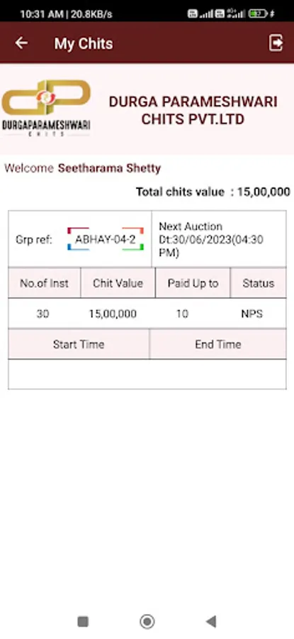 This chitcare member is meant for Durga Parameshwari chits customers only.