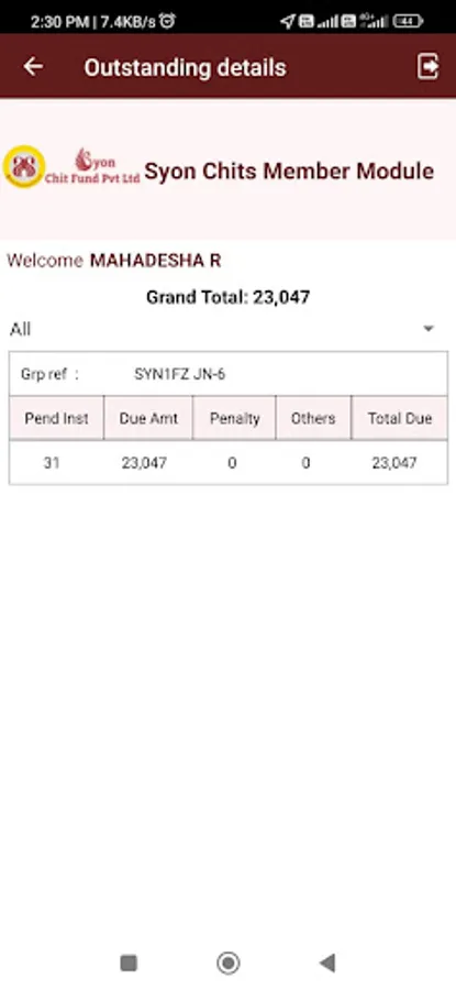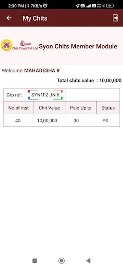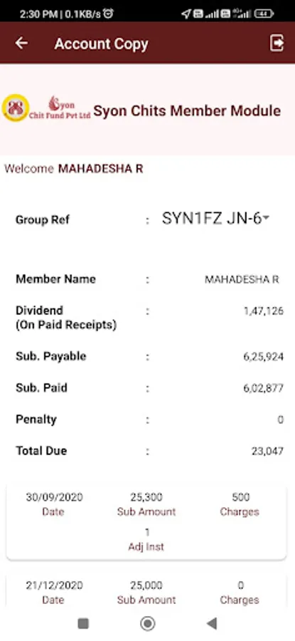customers can login and view their account copy,outstanding details with few clicks .To get your user name and password,please contact Syon chits pvt ltd.
