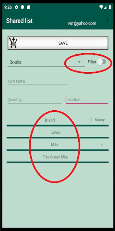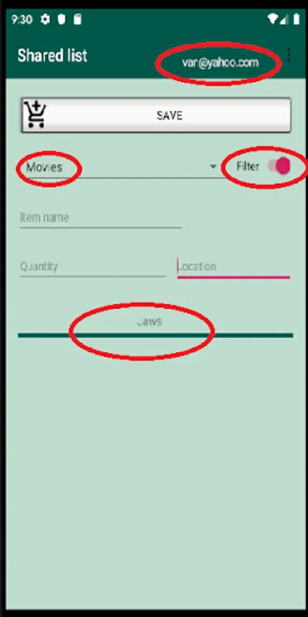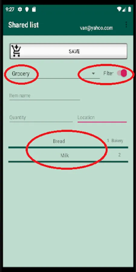 To add an item to your list, simply enter the values you want, select a category and click on Save.