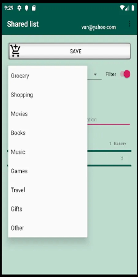 To filter your list, select a category and switch on the Filter. The list is updated every time you select a different category.