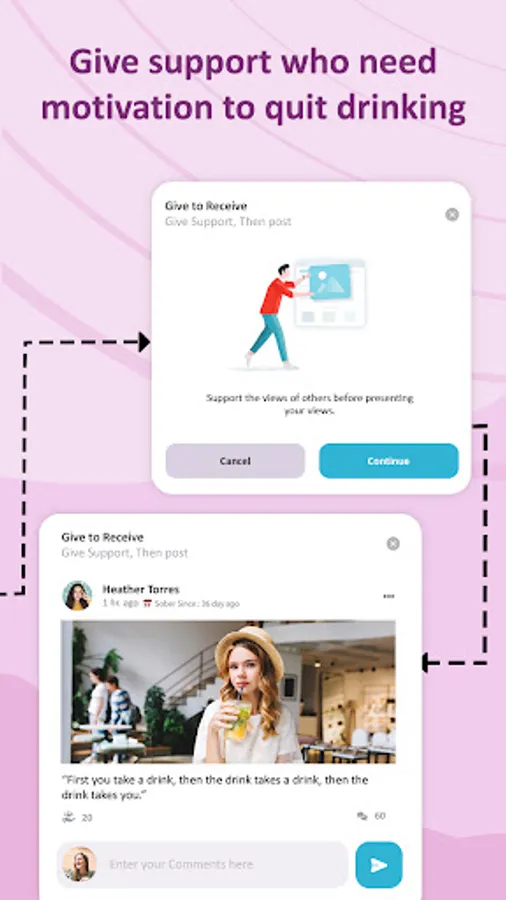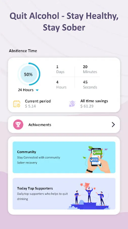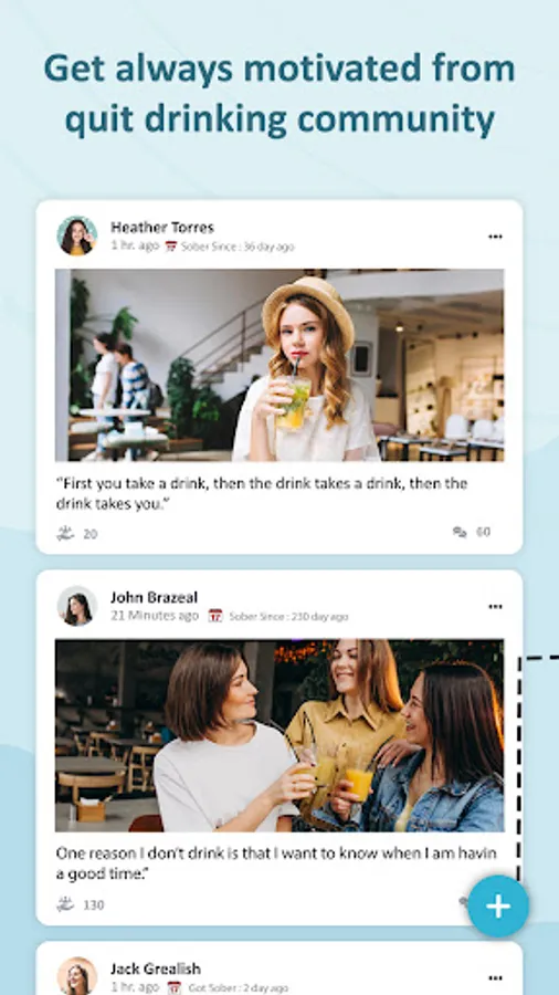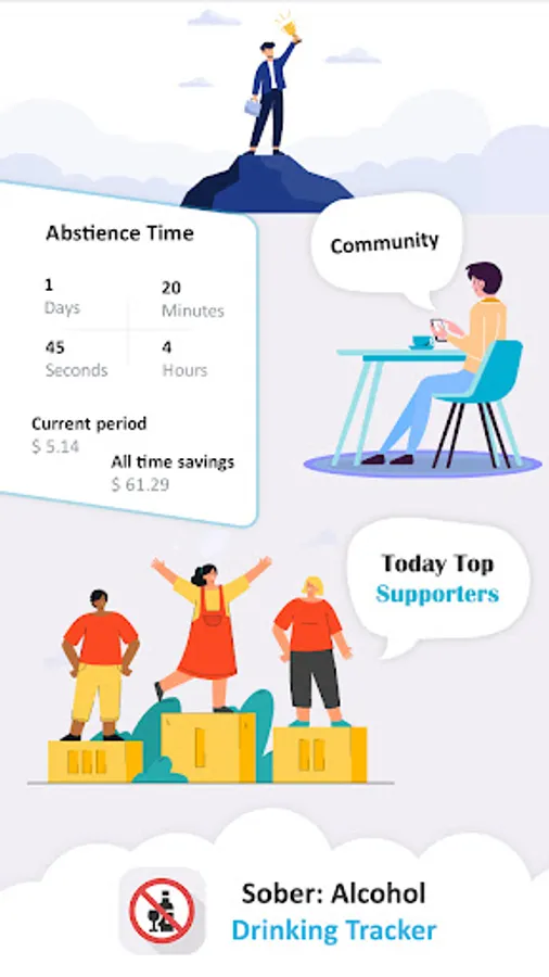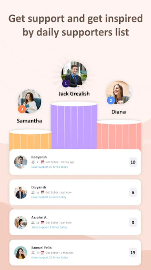 - Give support who need motivation to quit drinking and get inspired by daily supporters list