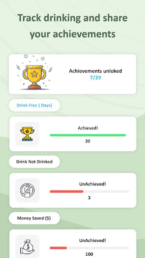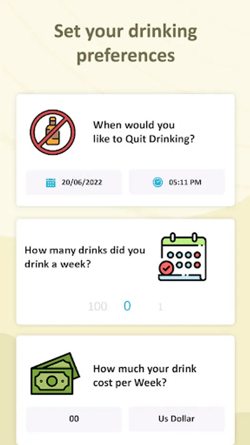 Set quit drinking date and time, money spent weekly, & drinks per week and you will get sober statistics. You will get daily notifications about how much time you have been sober.