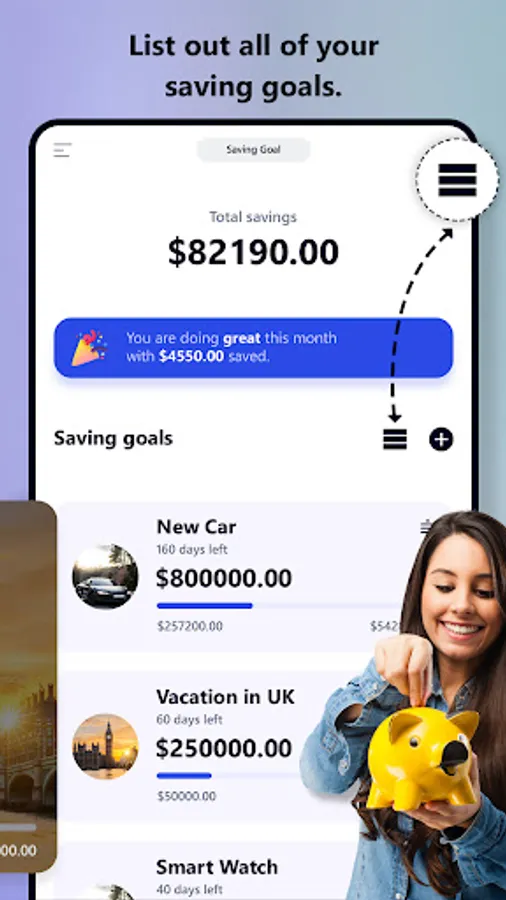 - Manage money & track your savings with this Savings Goal: Piggy Bank app