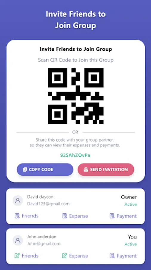 ➟ You can invite your friends to join the group, so that can also view the expenses and payments for the group. You can also allow them to add, update and delete the friends, expenses and payments for the group.