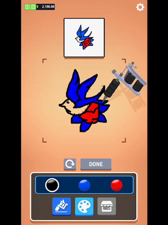 Are you ready to experience your inner rebel? Ever wonder what it is like to get a tattoo? Now you can experience it all without feeling the pain! Fill in hundreds of different tats for your customers. Try to get the picture as close as possible for them and don’t mess up!. Get ready to feel the satisfaction of watching your art become real tattoos! Relax and use your precision to point and aim the needle to fill in the shapes. So many satisfying vibrations! Fun and easy to pick up but don’t miss an ink... Will you be the first one to tattoo them all?