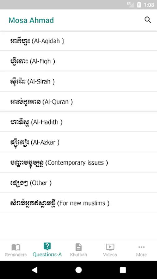 • Question Answer about islam include Al-Aqidah, Al-Figh, Al-Sirah, Al-Quran, Al-Hadith,