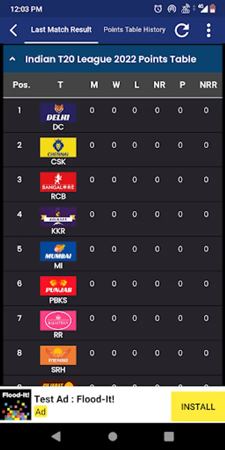 In the first screen you will see the last match result of World ODI Tournament and in the next screen you will see updated points table after the match end.