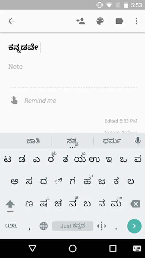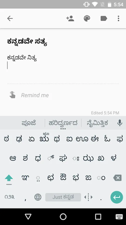 For Voice Input, tap Mic icon, settings key, and Kannada in Languages.
