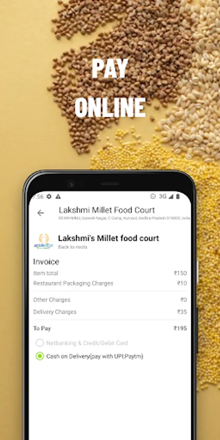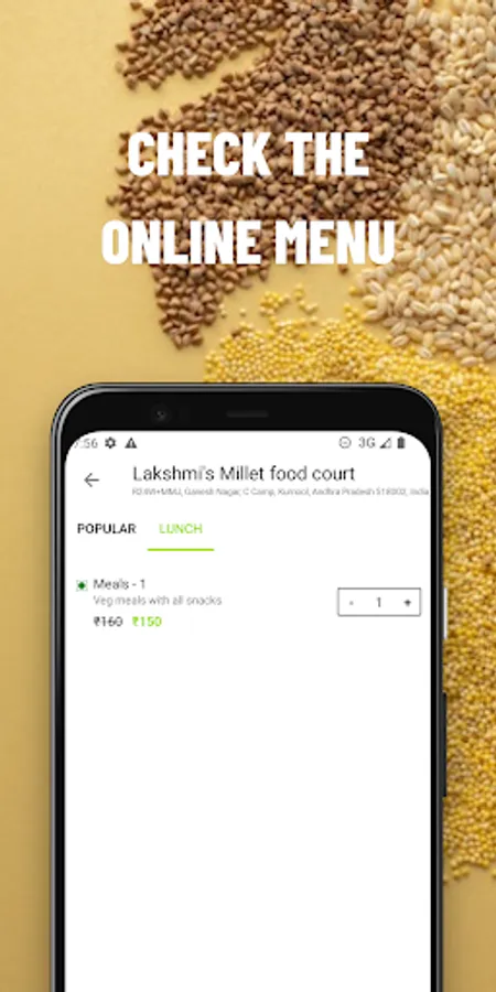 With our user-friendly app, you can easily browse through our menu, place an order, and have it delivered straight to your doorstep or pick it up from our restaurant in Kurnool. Our fast and reliable delivery ensures that you can enjoy your millet meal without any hassle.