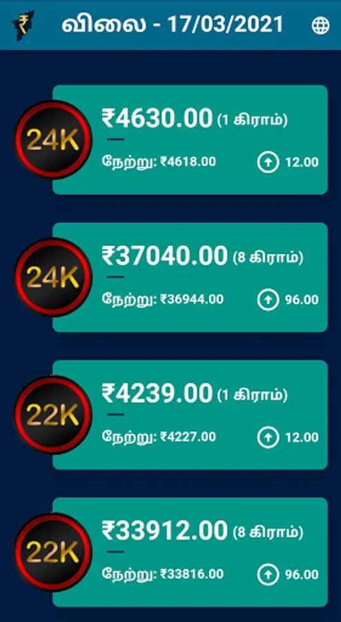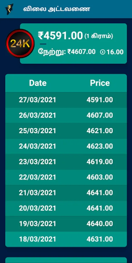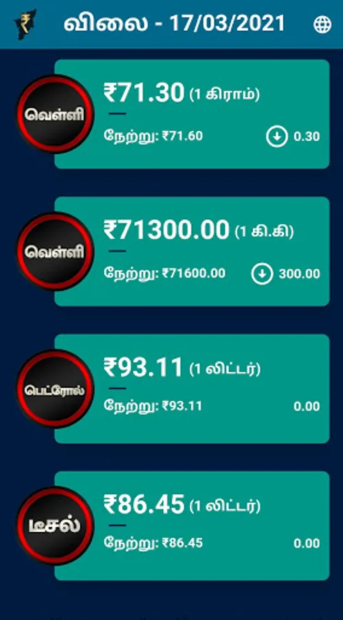 This app helps to know about daily market rates of gold, silver and fuel rates in Tamilnadu, India.