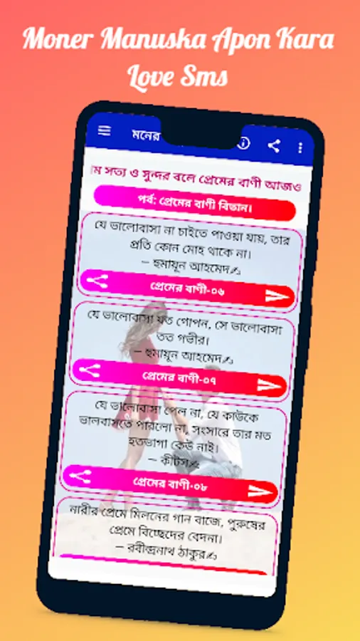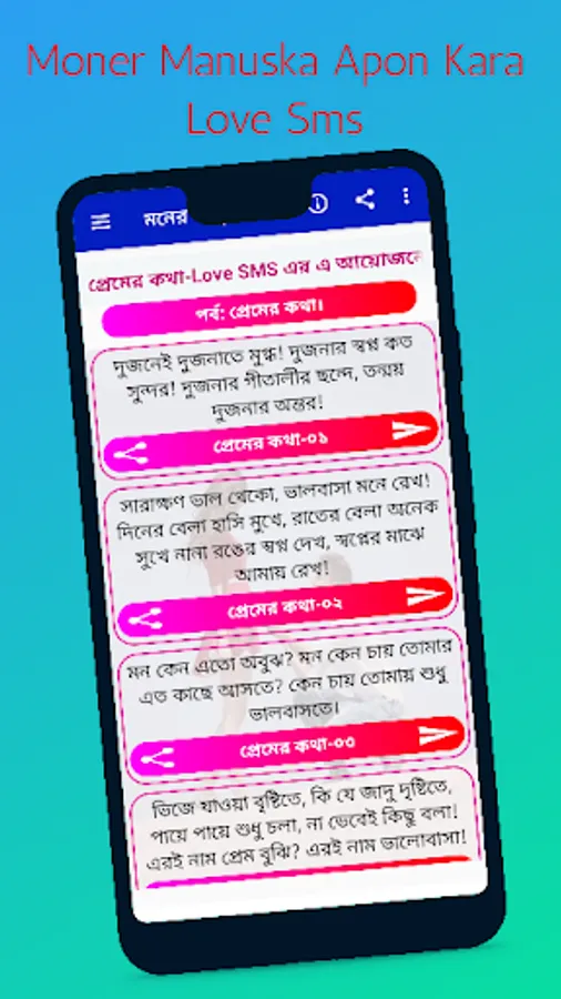 In the app, the emotions are beautifully arranged with thousands of SMS in the light of love, love, jealousy, union, and dignity. So download the app and share your favorite sentiments with your loved ones in an instant.