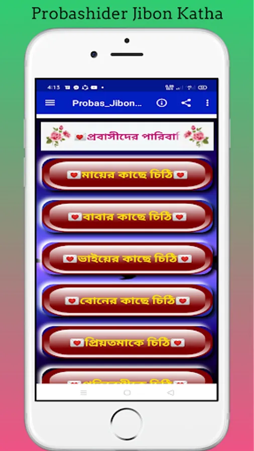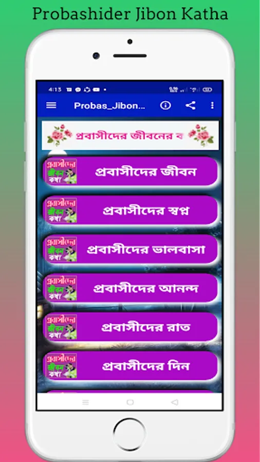 ☑ App-a paban: Probashider Jibon,Probashider sapno,Probashider valobasa,Probashider ananda,Probashider kasto,Probashider biraha,Probashider bari fera,Probashider din,