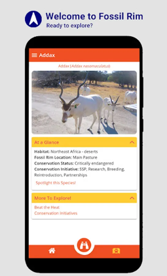 Fossil Rim Wildlife Center is dedicated to the conservation of species in peril, conducting scientific research, training of professionals, responsible management of natural resources, and public education. Through these activities, we provide a diversity of compelling learning experiences that inspire positive change in the way people think, feel and act with nature.